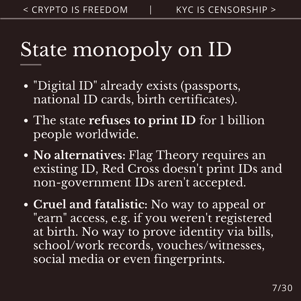While personal IDs are a dangerous concept, non-government IDs from NGOs or companies are easier to access than the gatekept, single point of failure of government ID systems.