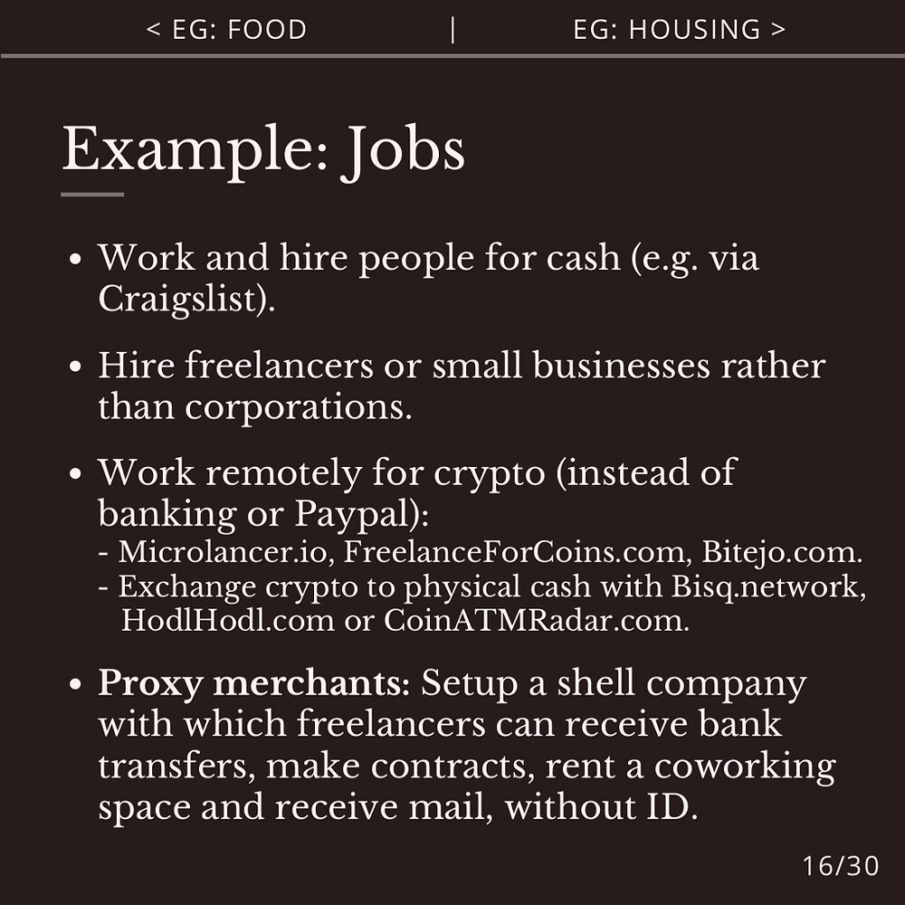 Agorist jobs include under-the-table jobs for cash and crypto, either as your main income or on the side.