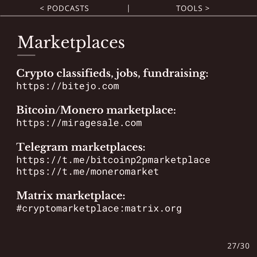 There are many resources, articles, podcasts, directories and tools to help you to learn more about agorism and build truly free markets.