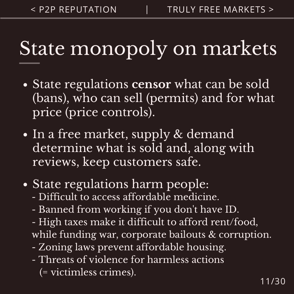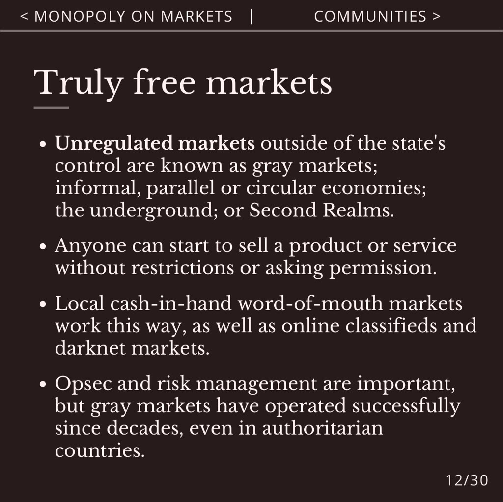 Next to the state monopoly on money and identity, is the monopoly on markets.