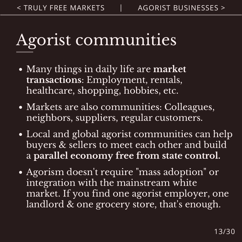 Slide 13: Agorist communities