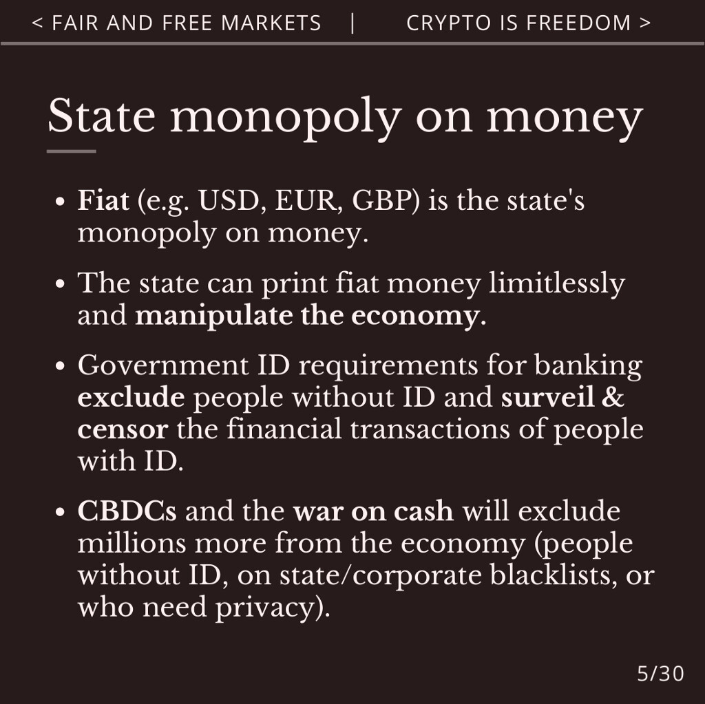 As the state is phasing out cash and planning to introduce gatekept and surveilled CBDCs, a free currency is necessary.