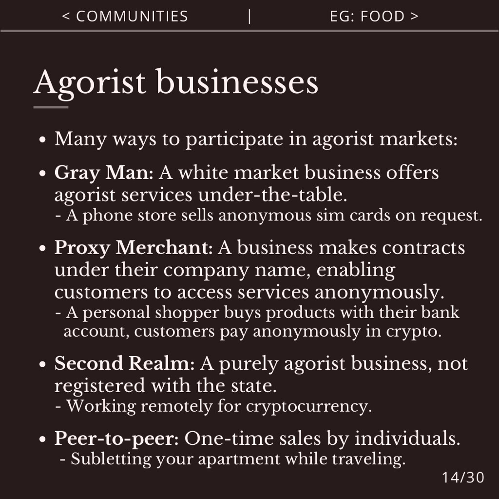 Slide 14: Agorist businesses
