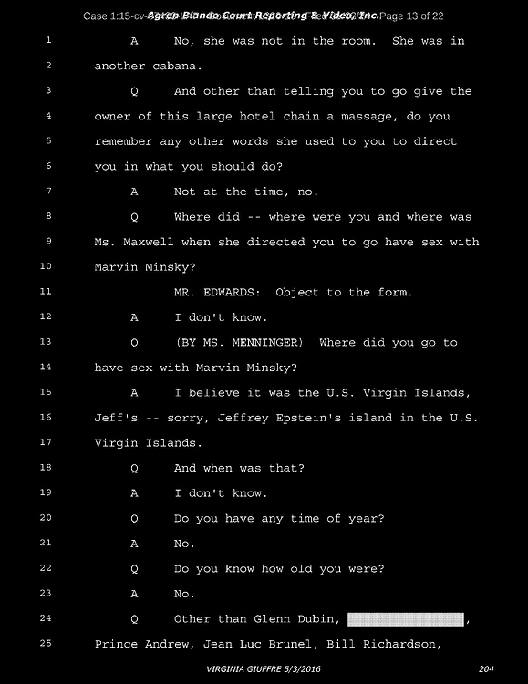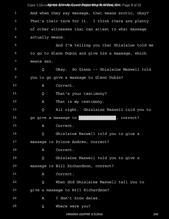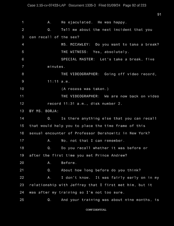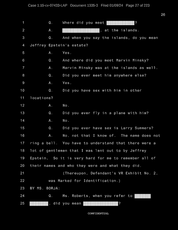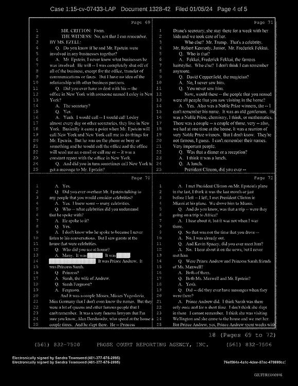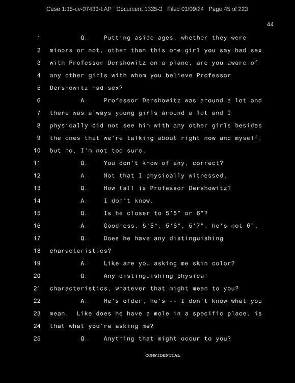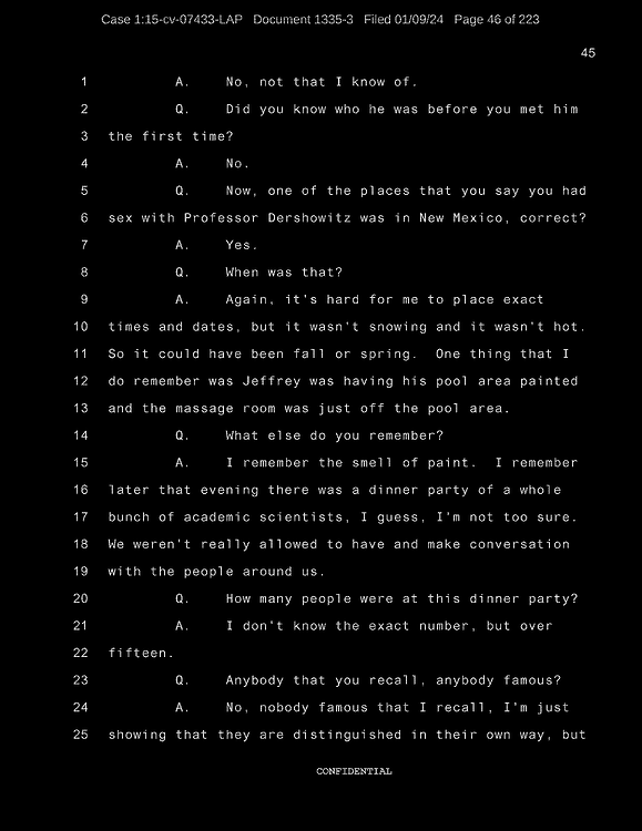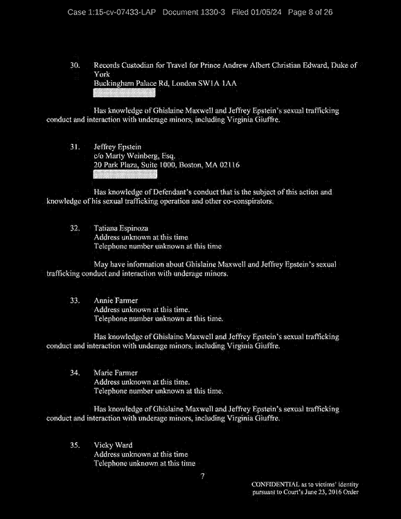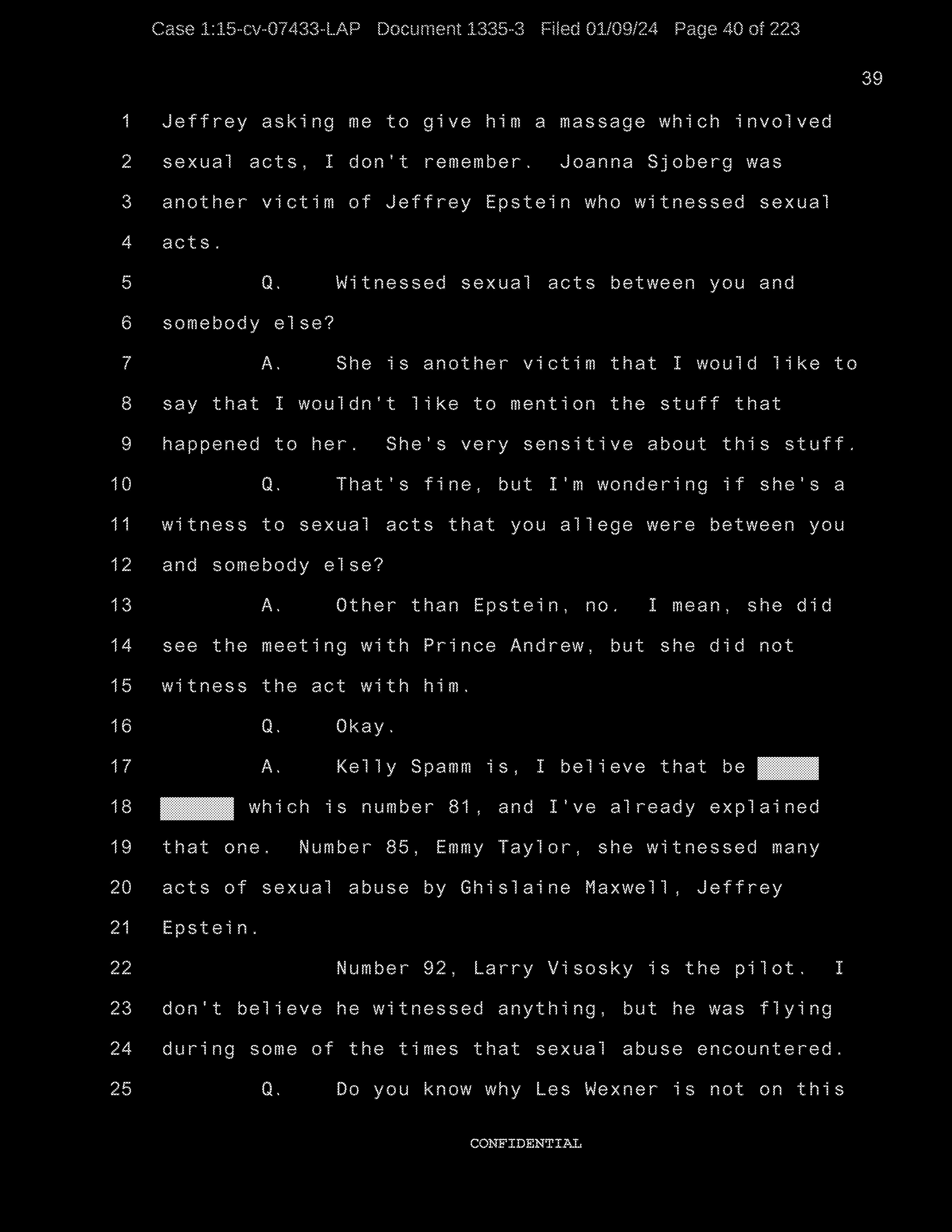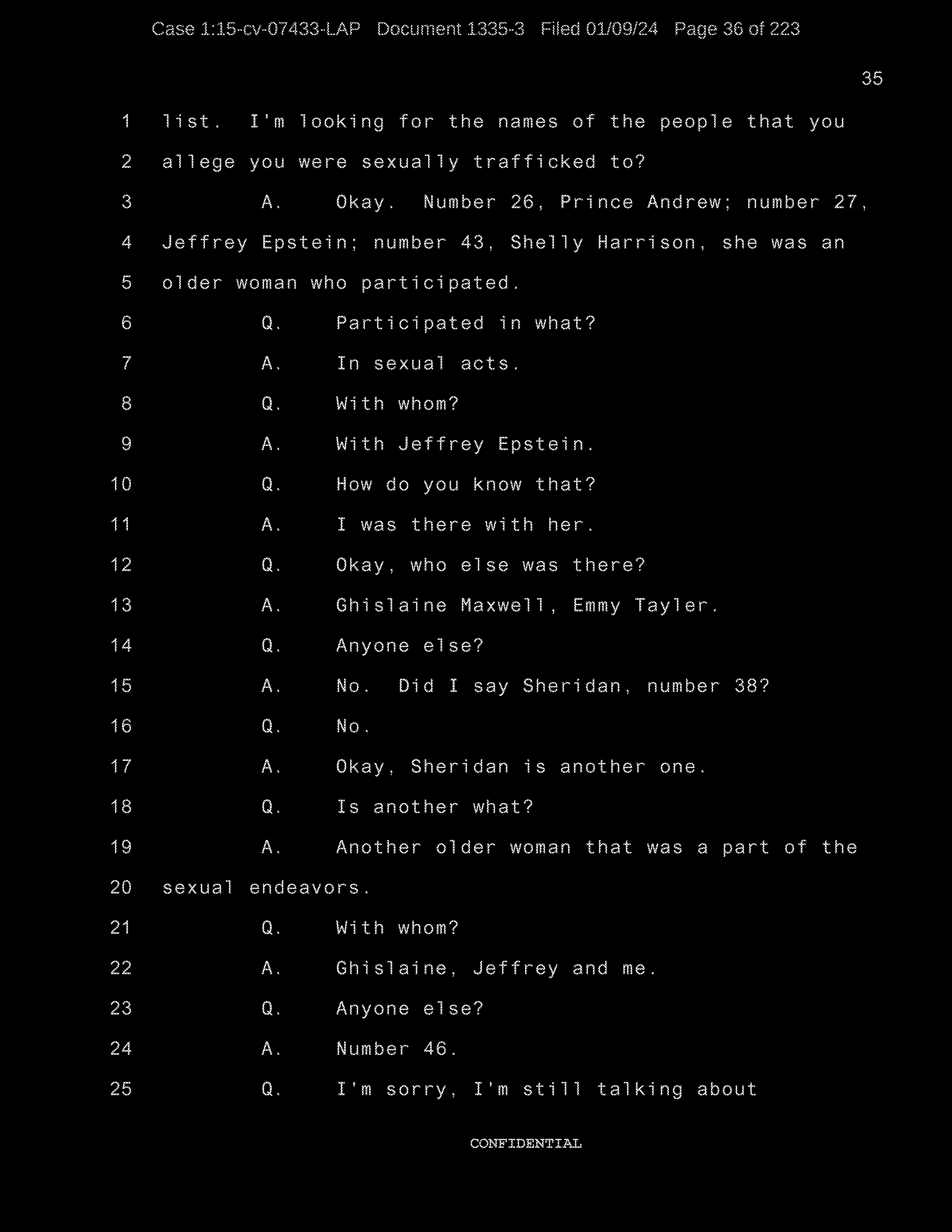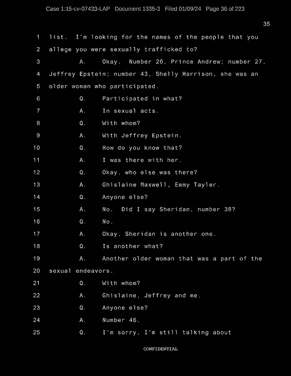 A: Okay. Number 26, Prince Andrew, number 27, Jeffrey Epstein, number 43, Shelly Harrison, she was an older woman who participated.
