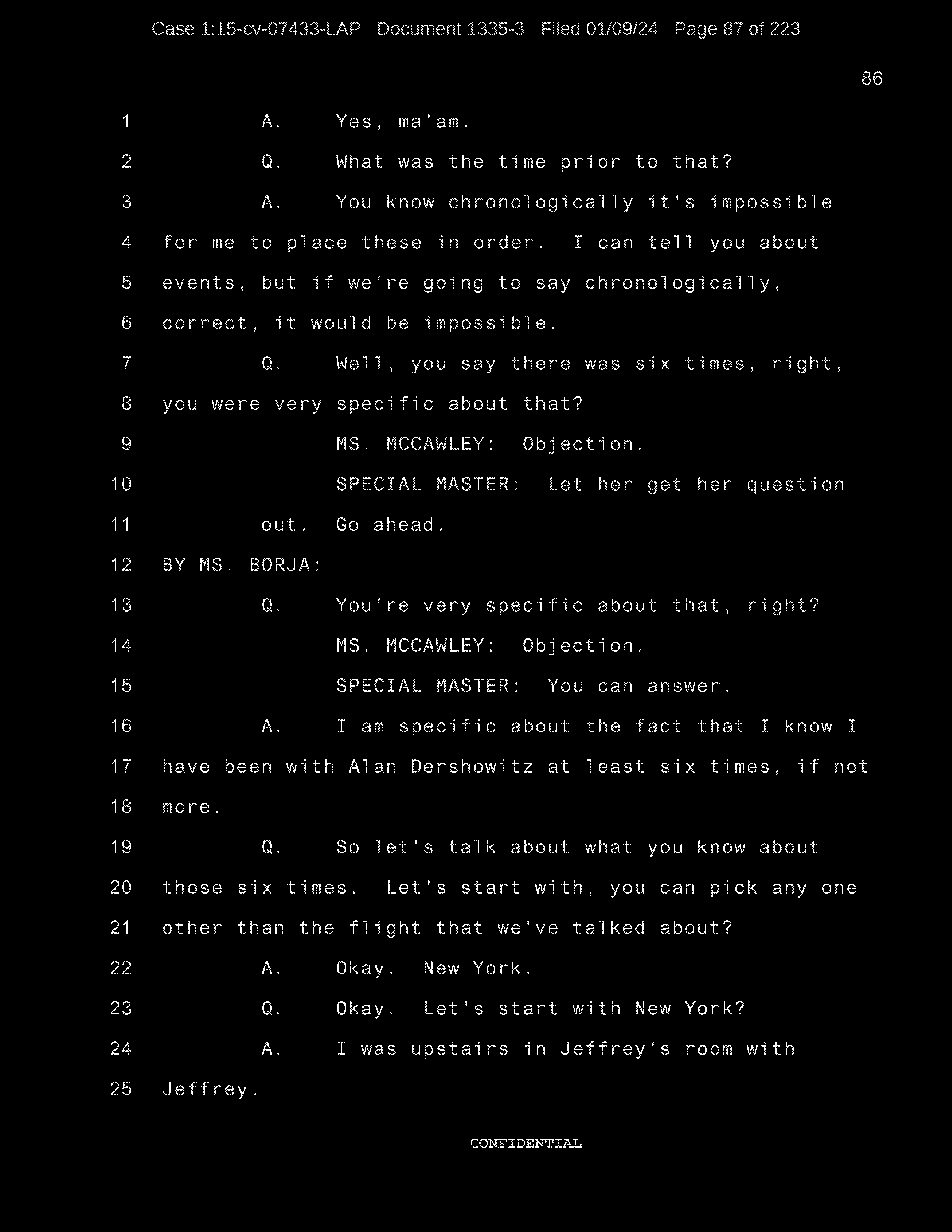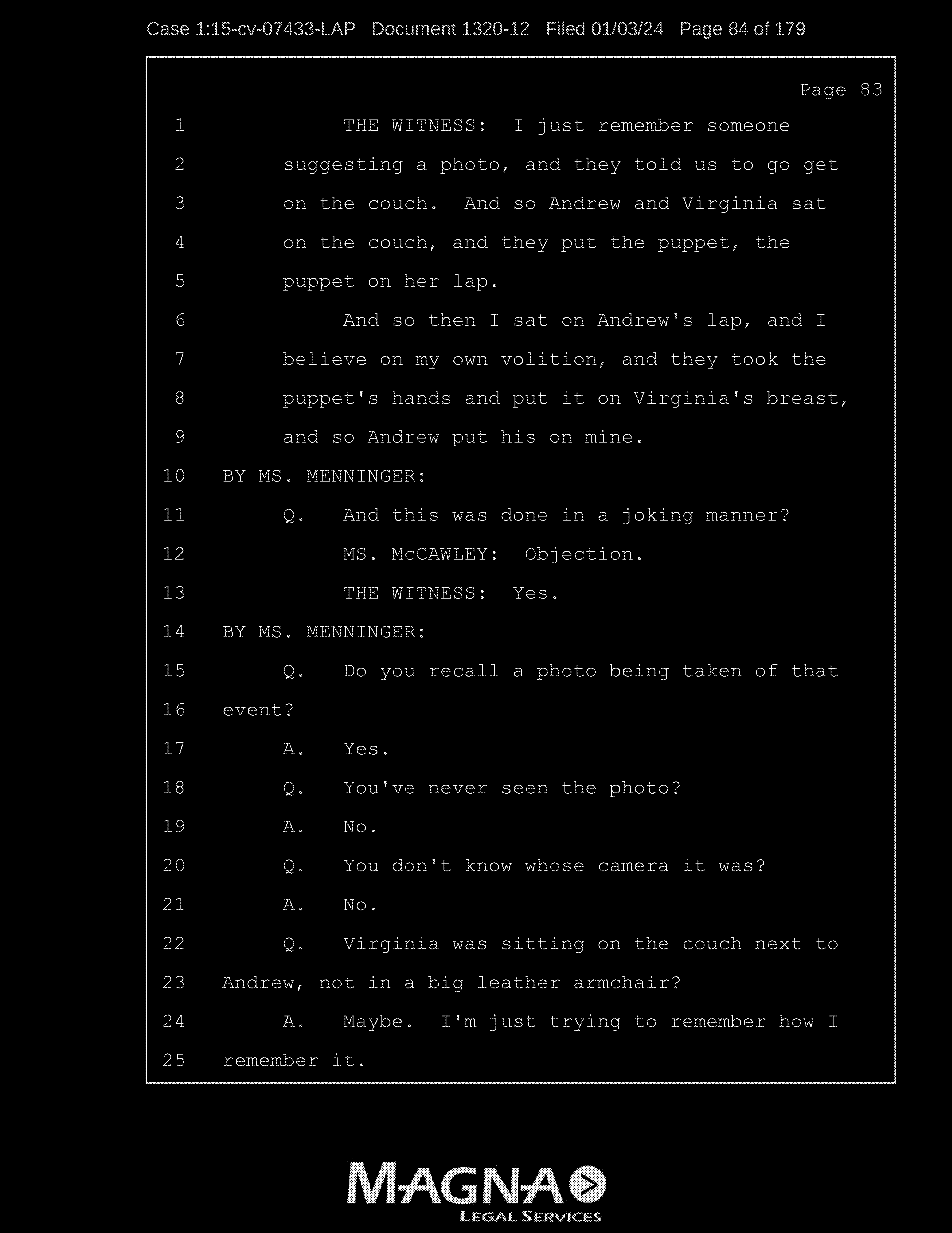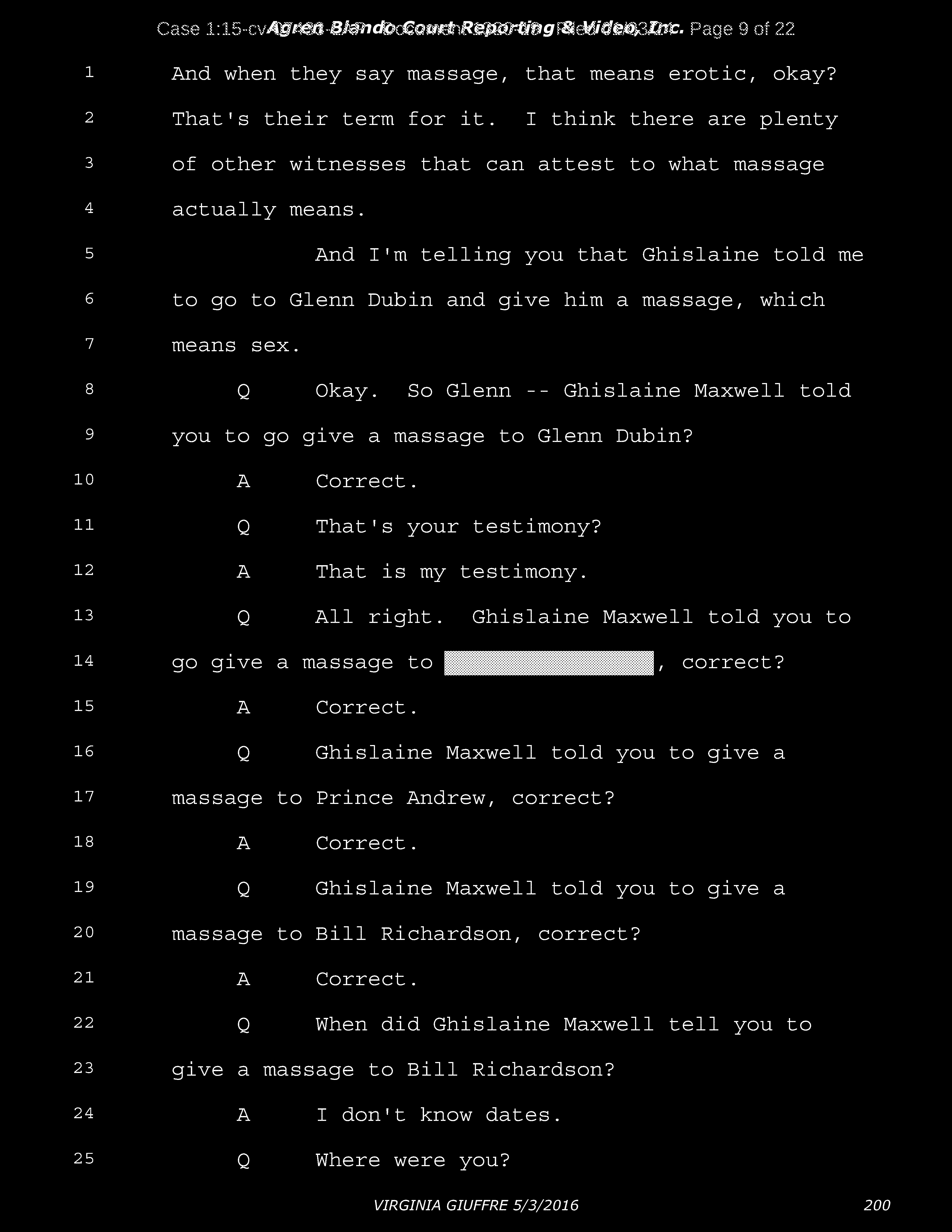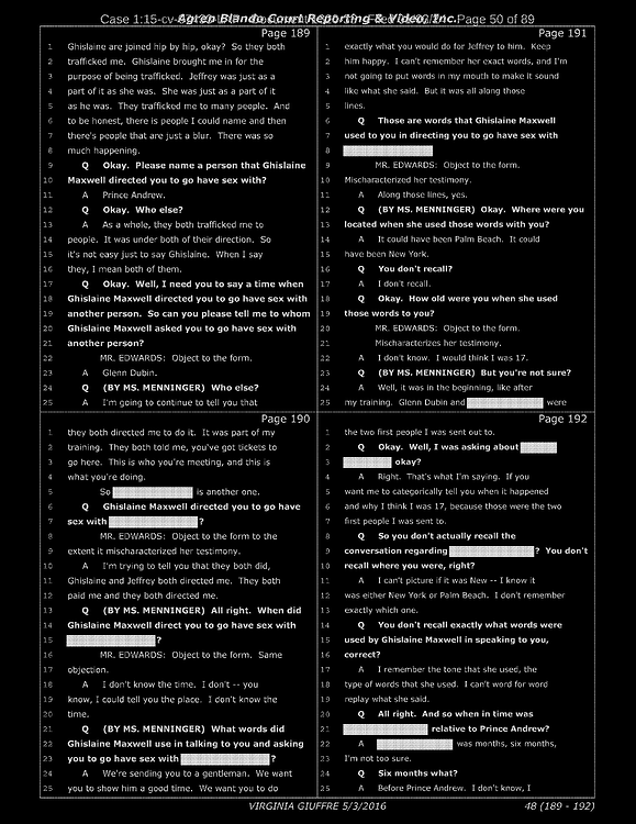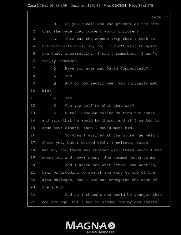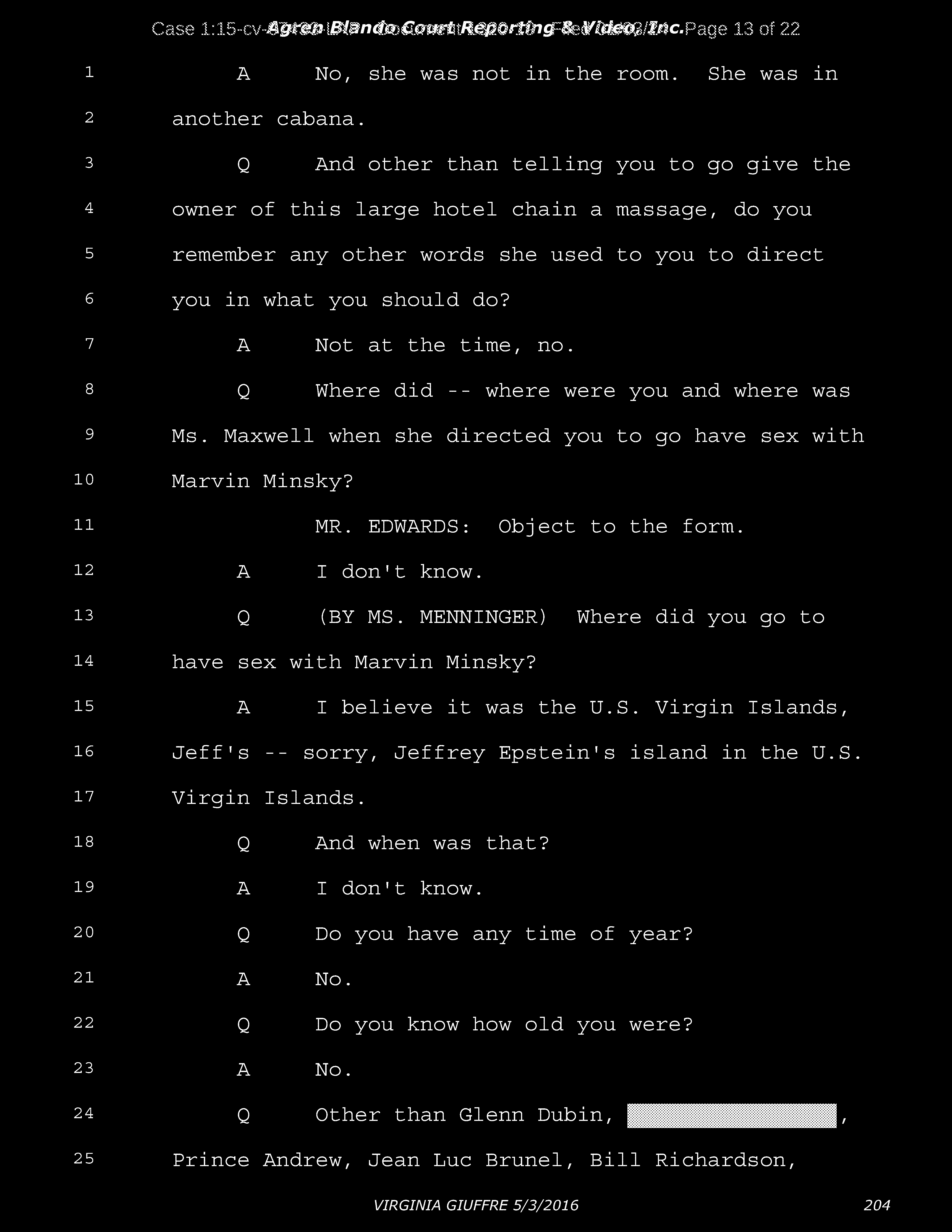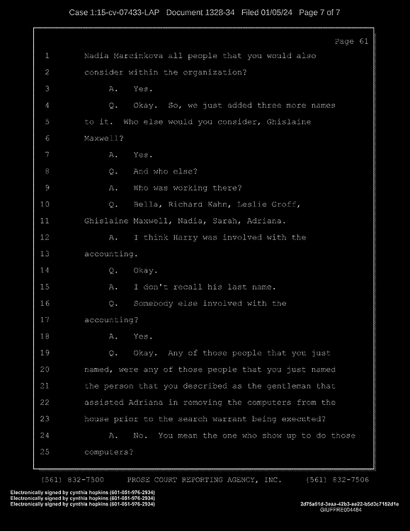 A: Okay. Number 26, Prince Andrew, number 27, Jeffrey Epstein, number 43, Shelly Harrison, she was an older woman who participated.