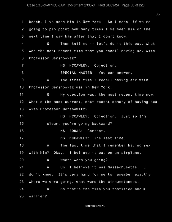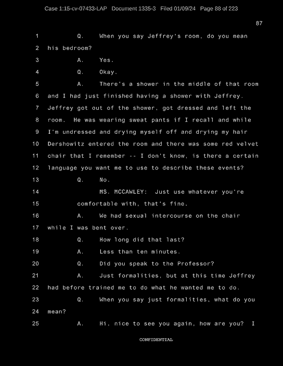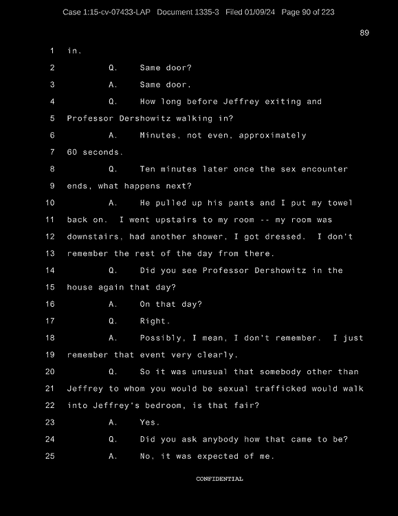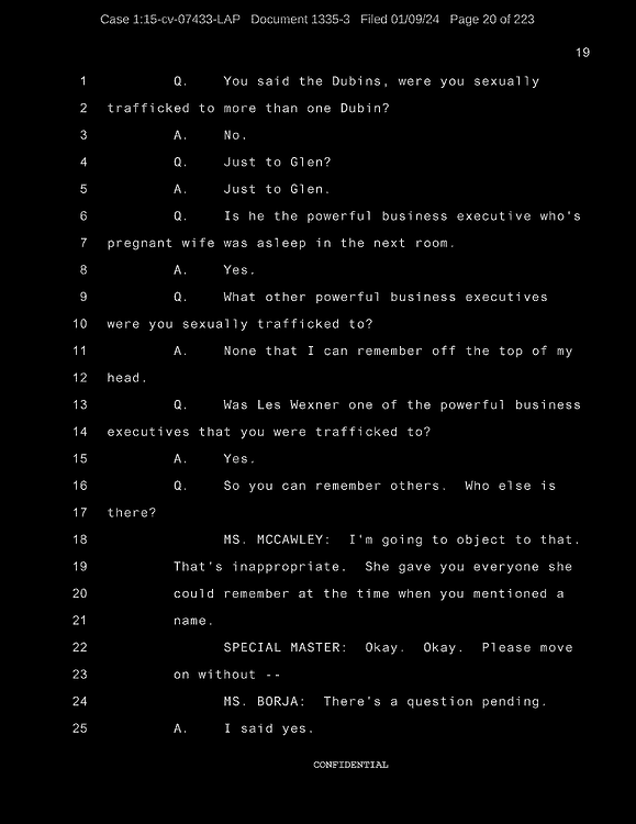 Q: Did Mr. Wexner ask you to wear any particular clothing during your sexual trafficking?
