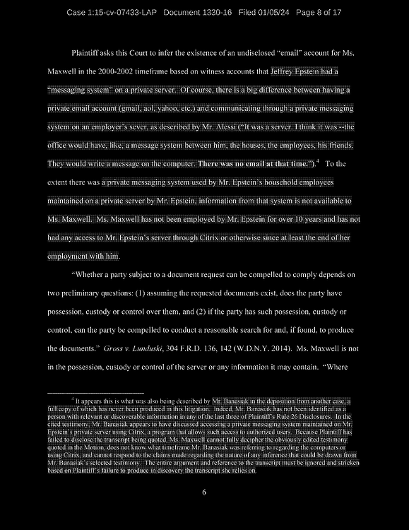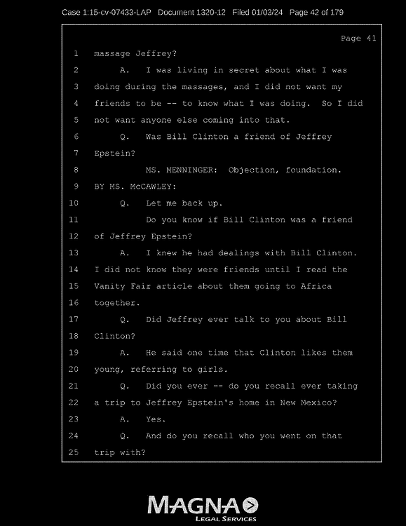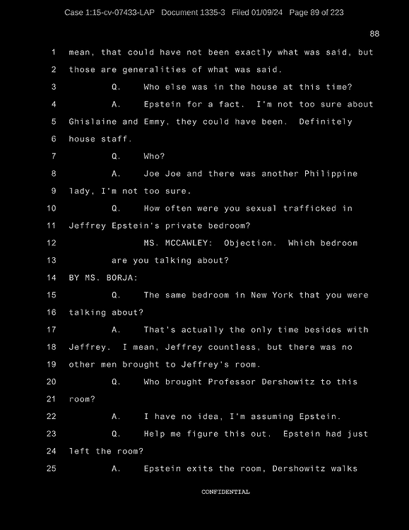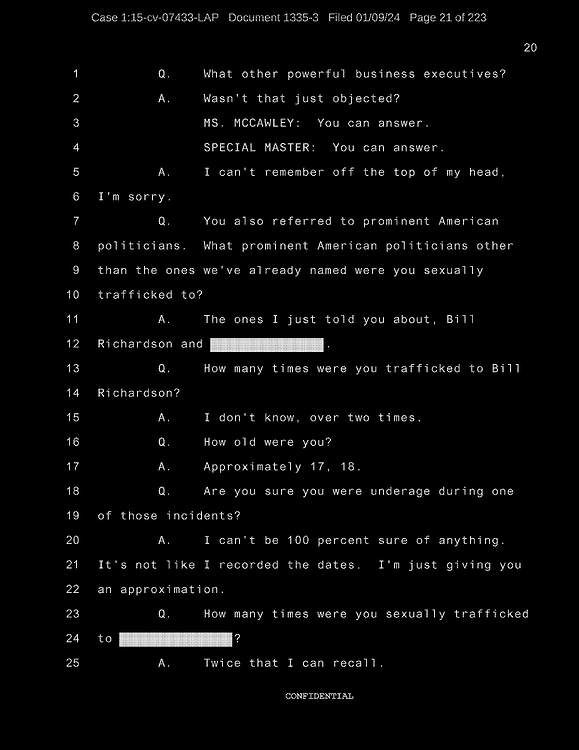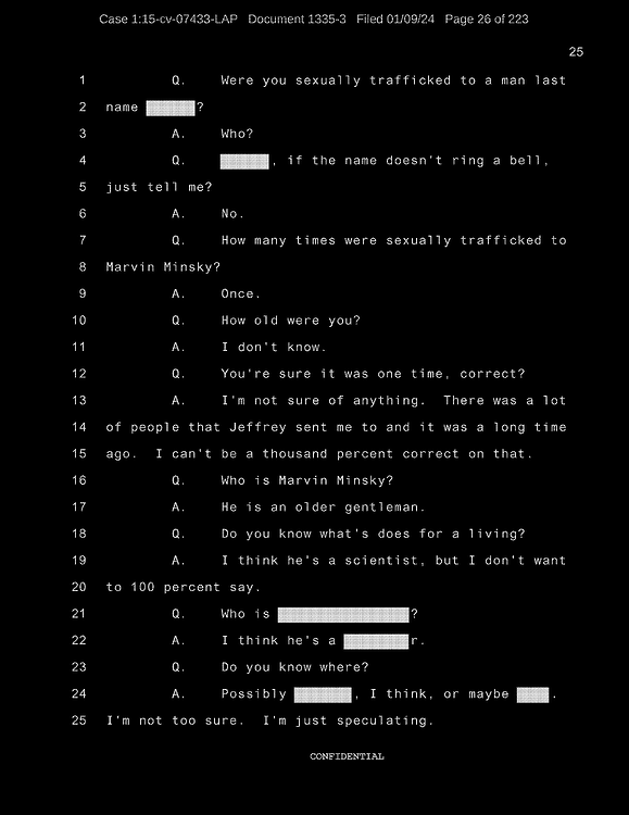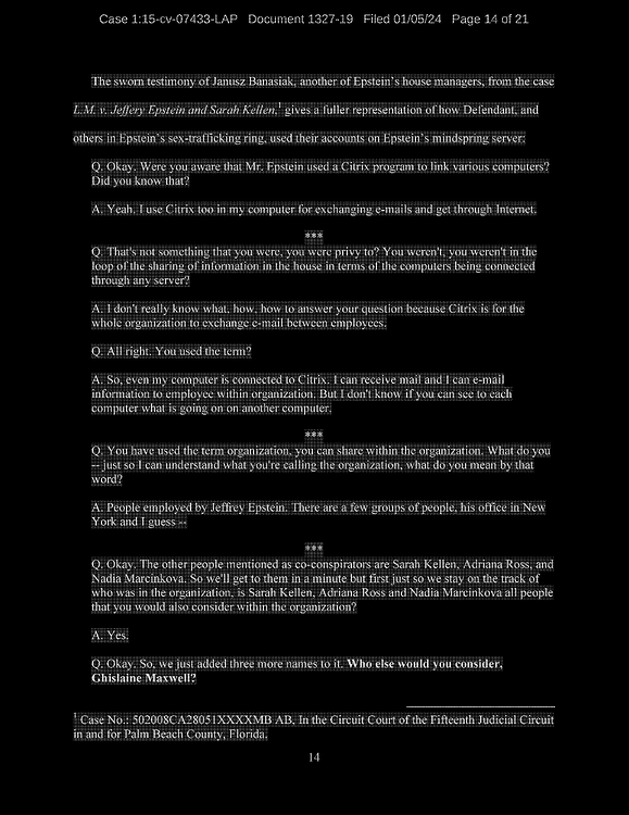 This is an overview of all recently released Epstein/Ghislaine court documents (as of Jan 8th, 2024) – taking great pains to capture the most relevant details from the original source documents. I did this because obviously the media and news cannot be trusted to be unbiased or even conduct effective document analysis.