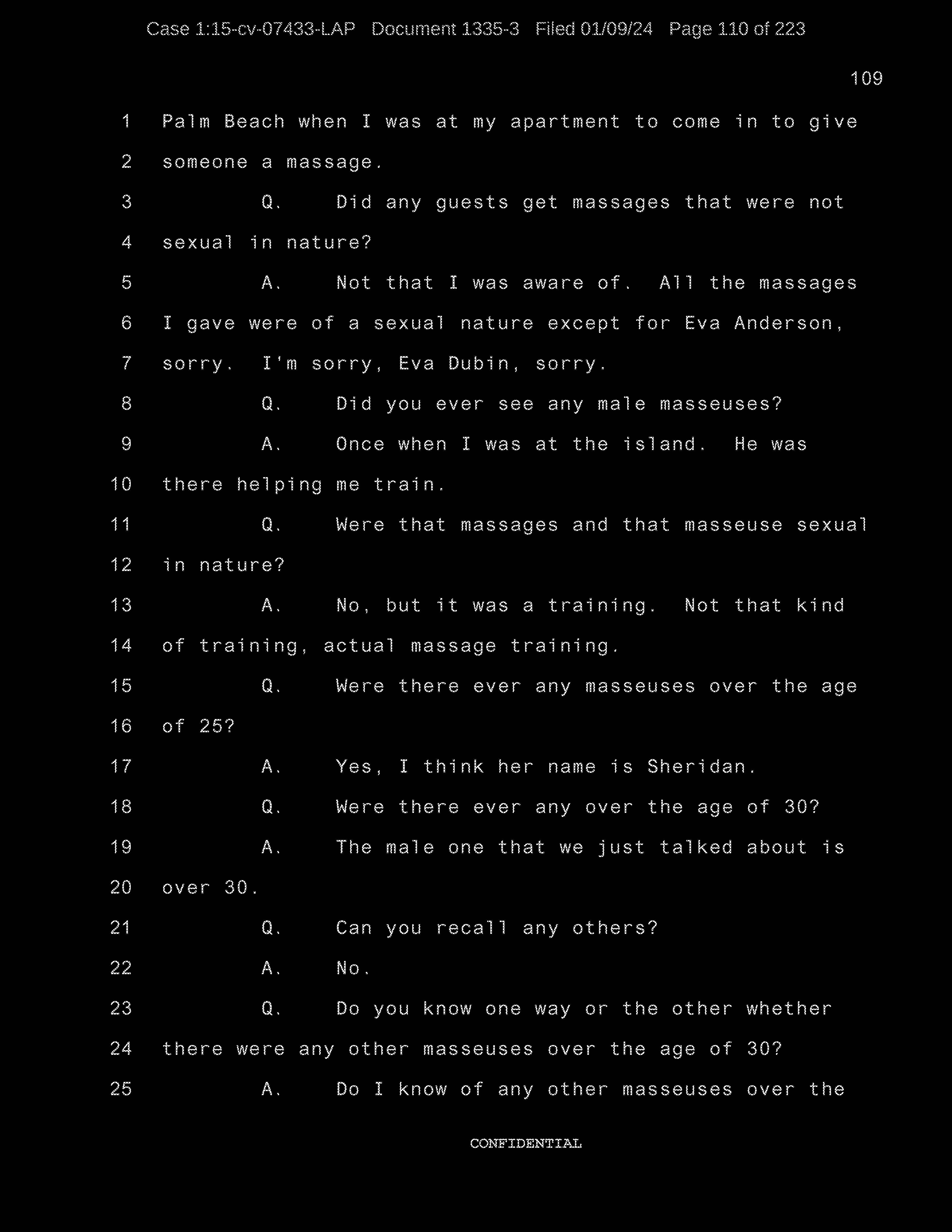Q: That were providing massages to Jeffrey Epstein?