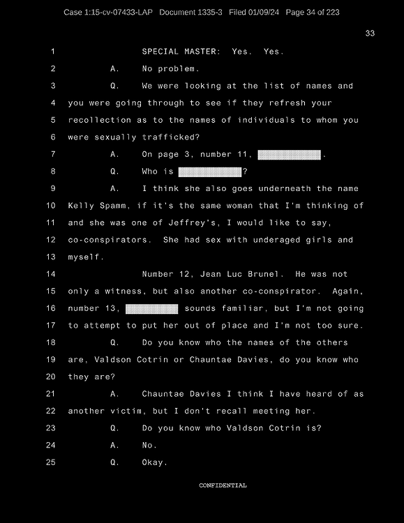 A: I think she also goes underneath the name Kelly Spamm, if it’s the same woman that I’m thinking of and she was one of Jeffrey’s, I would like to say, co-conspirators. She had sex with underaged girls and myself.