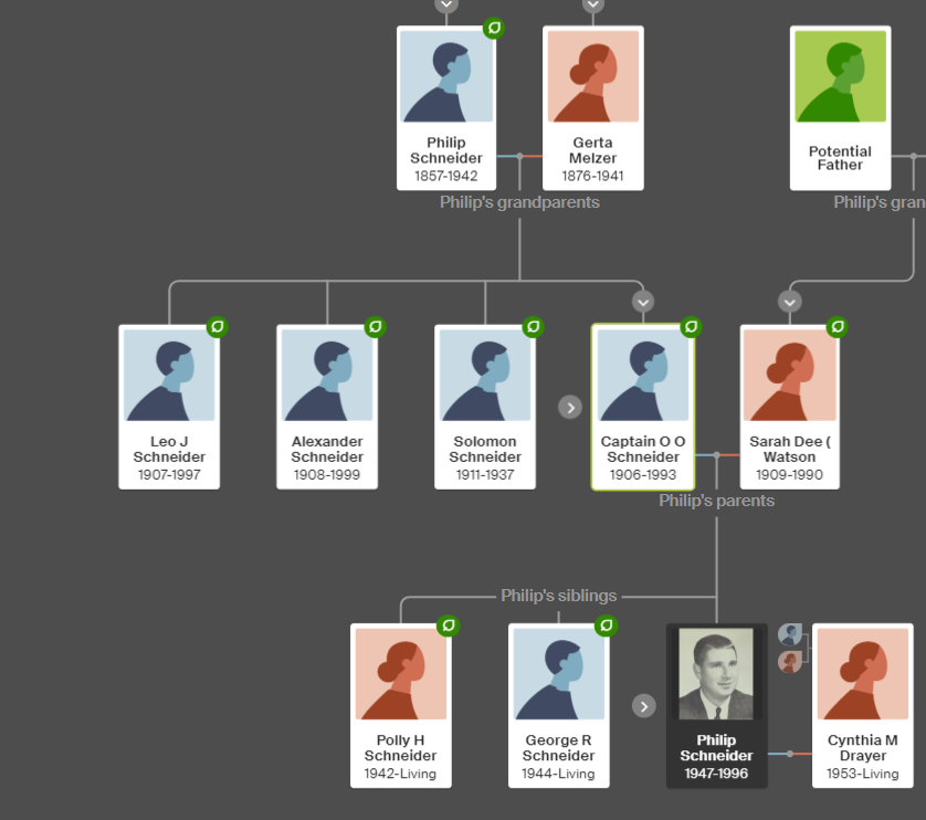 Hereâs Philâs basic vitals (the tree is publicâ just search for it if you have an ancestry.com account, or go here):