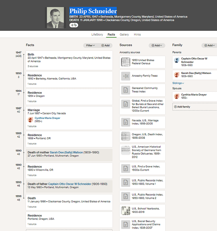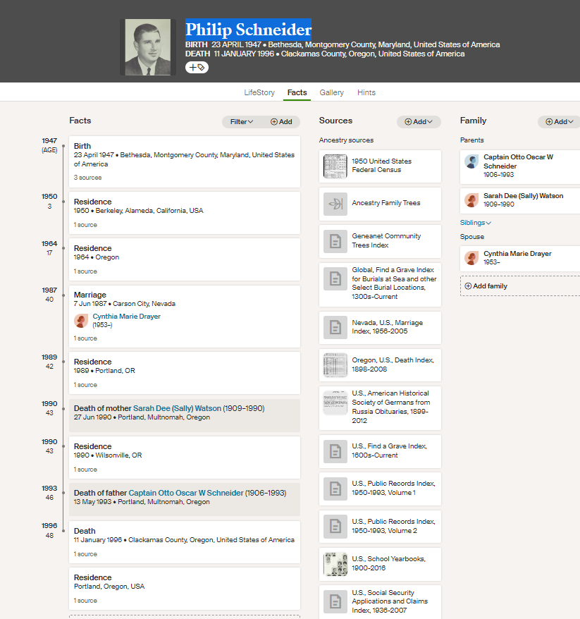Phil Schneiderâs public family tree