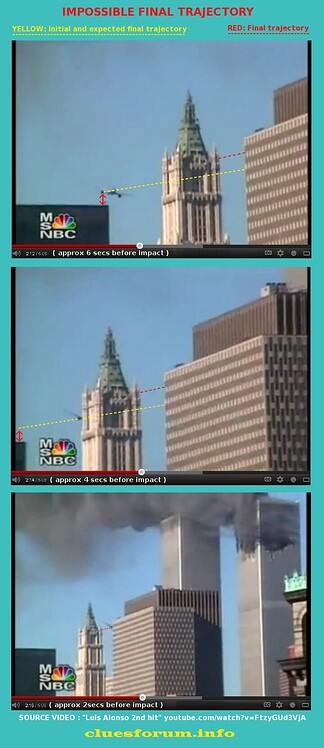 So, was “FLIGHT 175’s” trajectory ascending/ descending /or perfectly level in its last seconds of flight ? What’s it gonna be ? Is all of this, as naysayers say, “only a matter of perspectives - and just a series of optical illusions?” Can anyone really seriously claim that all the above trajectories are perfectly consistent with each other - thus credibly depicting the very same event as if captured by real cameras in the real world? You decide.