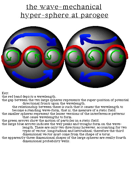 This seems like a complicated process. However it will become easier to visualise (though perhaps more difficult to explain) with the next figure. For now all we need to know is that the precession of manifestation (the process of tachyon recycling) is = to the orbit of dimension (the tachyonic multiverse comprised of all toroidal sum/histories of black holes) and that the precession of dimension (the toroidal manifold sum over histories of the entire multiverse itself) is also = to the orbit of manifestation (the combined rotations of any given black hole). In plain english, what we see as a singular process OUTSIDE in timespace (the multiverse) is also seen as multiple physical events INSIDE in spacetime (the universe). And, in the simplest terms possible, the inside of the universe is also equal to the outside of the universe.