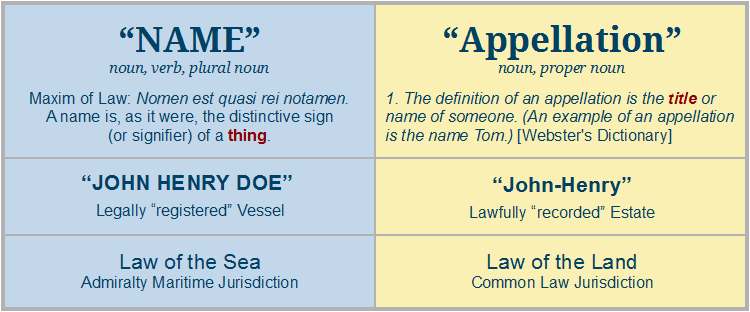Joinder: When a man or woman “acts” in the “role” of an “artificial person” they are an “accommodation party” invoking “joinder” to that “artificial person”. They are “acting” in a fictional persona. Their jurisdiction changes to that of an “artificial person” and they are therefore bound by the Statutes that control “artificial persons”. When a legal actor asks for your name, address, and date of birth, this is to establish the NAME and address of an “artificial person” - the “person”, and the date it was created by “registration”, or “birthed” (berthed) as a “vessel” in the sea of commerce. Men and women are “born”, and have a living “born identity”, which is of no use to a legal actor. Once “joinder” (consent) has been established, the legal actor has jurisdiction and can enforce contracts, imposing penalties and fines. A legal actor can obtain jurisdiction over you by asking “Do you understand?” (stand under my authority). Withholding your family name ALWAYS avoids “joinder”, and is your Right in Law.