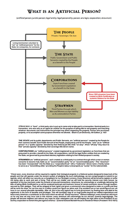 Fictional “creatures of the State” have “status”, whereas living men and women with flesh and blood arms and legs have “standing”. The “artificial person” has no “standing”. The entire concept of fictional entities is an abstraction of the mind. It is an illusion that depends utterly upon your consent. Legal fictions are dead-at-law, and therefore it is unnatural for a living man or woman to “join” to a fiction – it is a deadly corruption of life.