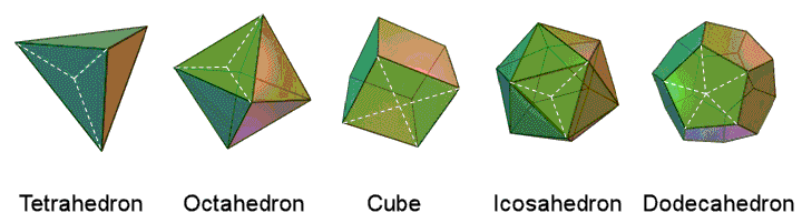 naturally reproduces the geometrical composition of the triangles making up the five Platonic solids! This is because: