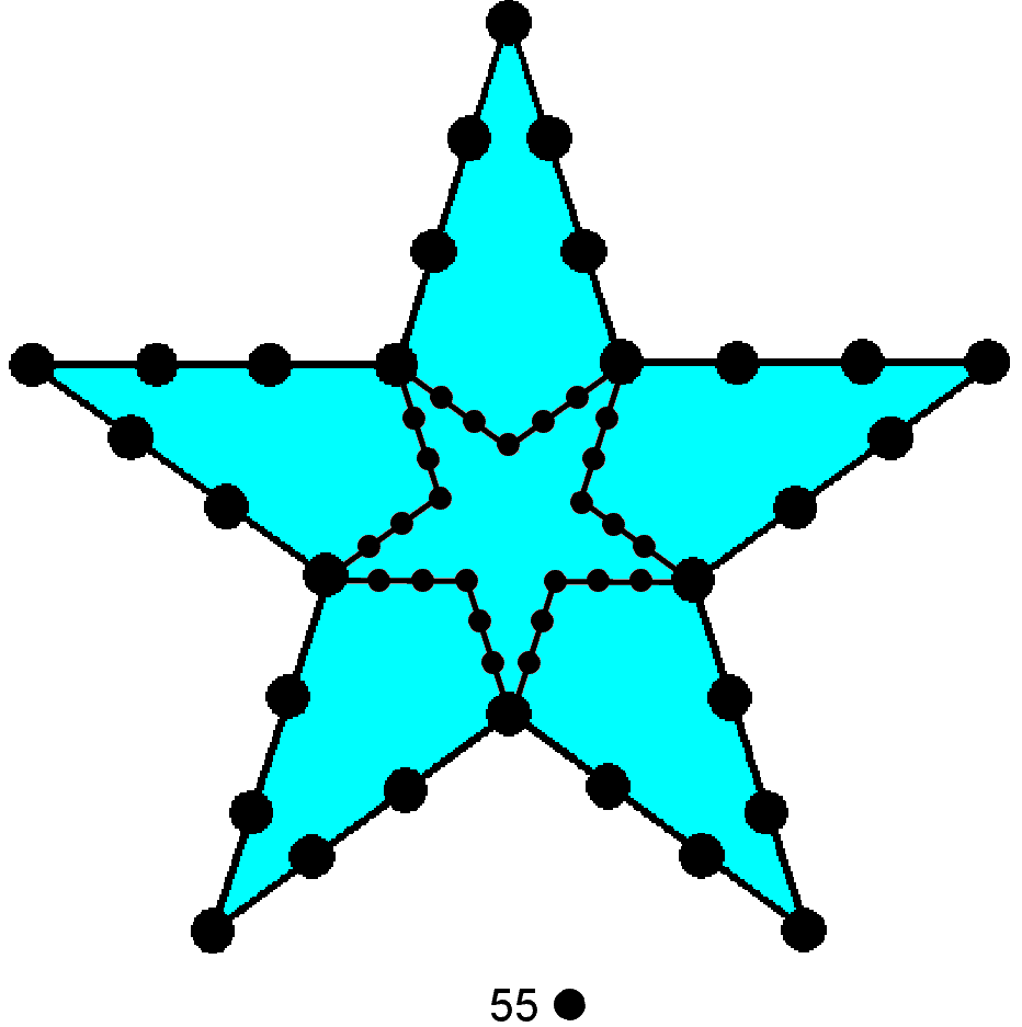 The number 55 is the number of yods lining the sides of two nested pentagrams: