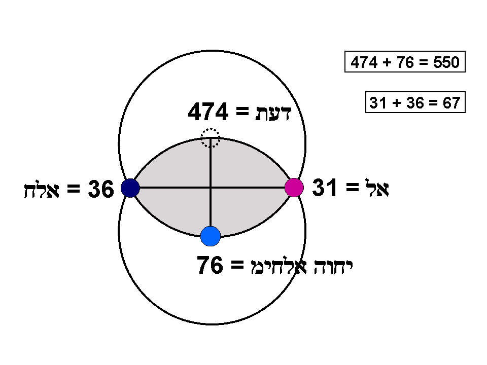 This number is the sum of the number 474 of Daath and the number 76 of YAHWEH ELOHIM. The 550 Sephirothic levels that span CTOL are therefore the measure of the “knowledge of God the Creator.”