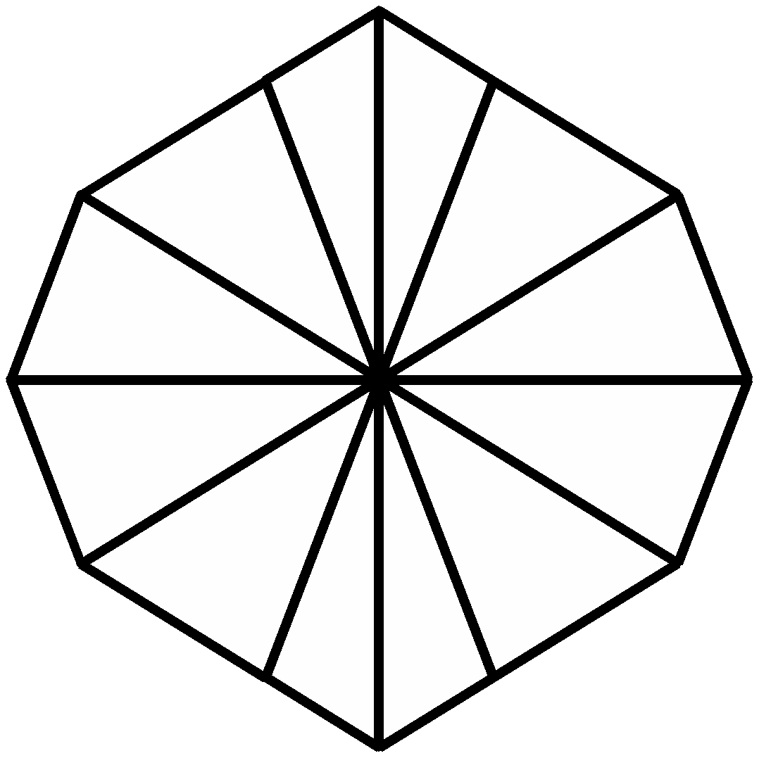 triangle, square, pentagon, hexagon, octagon, decagon, dodecagon.