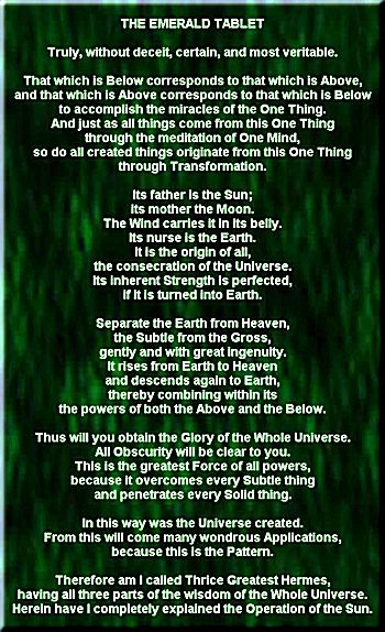 The ancient Greeks gave the name of Hermes Trismegistus (“thrice-great Hermes”) to the Egyptian god Thoth, or Tehuti, a god of learning and wisdom, who was the scribe to the other gods. According to legend, Hermes Trismegistus provided the wisdom in the ancient mysteries of ancient Egypt: “He carried an emerald, upon which was recorded all of philosophy, and the caduceus, the symbol of mystical illumination. Hermes Trismegistus vanquished Typhon, the dragon of ignorance, and mental, moral and physical perversion.” Called “The Emerald Tablet,”* its most significant part is within its opening: "That which is above is like that which is below and that which is below is like that which is above, to achieve the wonders of the one thing." Therefore, “This is the foundation of astrology and alchemy: that the microcosm of mankind and the earth is a reflection of the macrocosm of God and the heavens.” This metaphysical statement has been abbreviated to the saying “As above, so below.” As ‘Earth’ (meaning, of course, the physical universe, not just the planet Earth) is Malkuth, symbolized by the hexagonal yod at the centre of a tetractys, this hermetic principle is mathematically implemented in terms of the Pythagorean tetractys by replacing the 1st-order tetractys symbolizing Malkuth (the “below”) at the centre of the 2nd-order tetractys by a 2nd-order tetractys that represents the “above”.