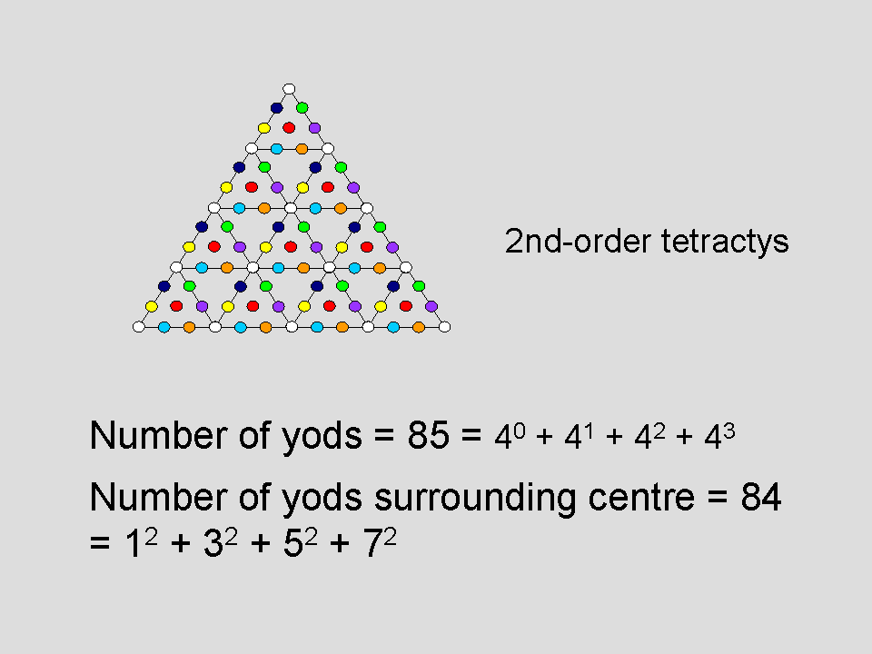 The Tetrad determines the number of yods surrounding the centre of a 2nd-order tetractys. These yods include 15 corners of 1st-order tetractyses, where