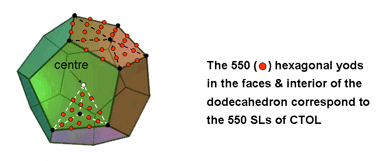 The 550 SLs in CTOL correspond to the 550 geometrical elements making up the faces of the 5 Platonic solids when they are divided into their sectors.