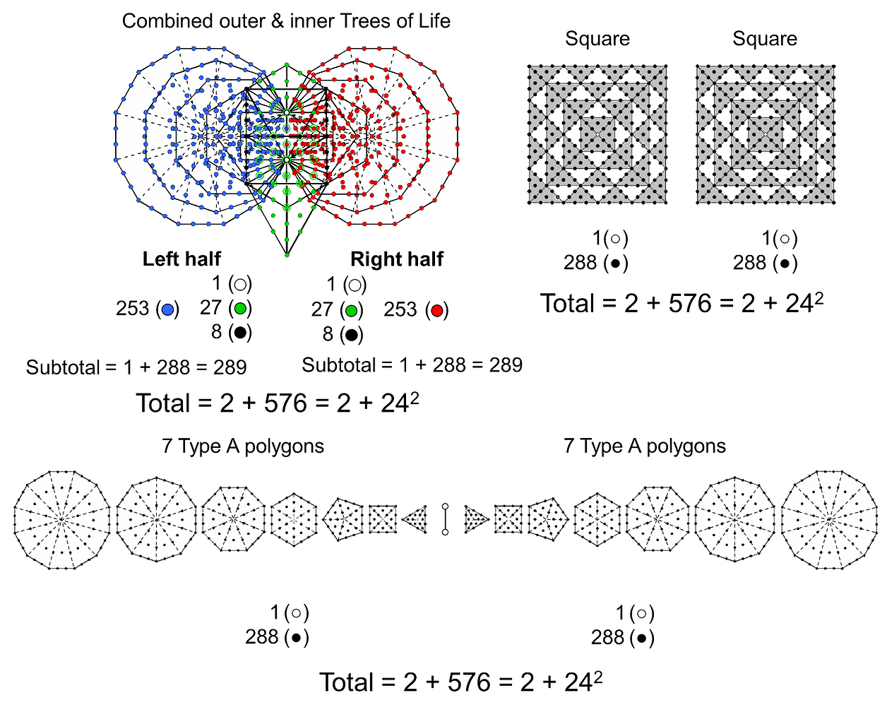 this illustrates the Tetrad Principle formulated in Article 1, according to which the fourth member of a class of mathematical object is (or embodies) a characteristic parameter of holistic systems (in this case, the number 295). It is exemplified par excellence by the Type C hexagon (the fourth class of the fourth type of regular polygon), which contains 248 yods outside its root edge that surround its centre: