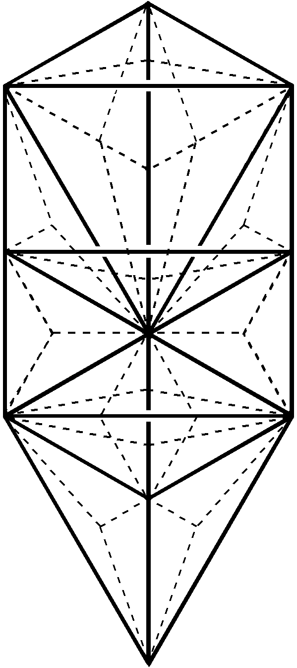 Therefore, the number of yods lining the sides of the mF tetractyses in the faces of a Platonic solid = 2E + 2mF + 2 + E = 2 + 3E + 2mF. “2” denotes two diametrically vertices (two adjacent vertices, in the case of the tetrahedron). For the five Platonic solids, ∑E = 90 and ∑mF = 180 (see table above). The number of yods lining the sides of the 180 tetractyses in the 50 faces of the five Platonic solids = ∑(2+3E+2mF) = 5×2 + 3×90 + 2×180 = 640, where 640 is the number value of Shemesh, the Mundane Chakra of Tiphareth. They include 50 vertices and 50 corners of sectors at the centres of their faces. Hence, (640−50−50=540) hexagonal yods line the sides of their 180 tetractyses. (10+540=550) yods line these sides other than the 40 vertices and the centres of the 50 faces that surround axes passing through the two diametrically opposite vertices of each Platonic solid (any two adjacent vertices, in the case of the tetrahedron). The 550 boundary yods correspond to the 550 SLs in CTOL. The 10 vertices lying on the axes of the five Platonic solids (their “poles”) correspond to the 10 SLs that belong to the highest Tree in CTOL. The 540 hexagonal yods on the sides of the 180 tetractyses making up their 50 faces correspond to the 540 SLs in the 90 Trees below it. This is another way in which the five Platonic solids represent CTOL.