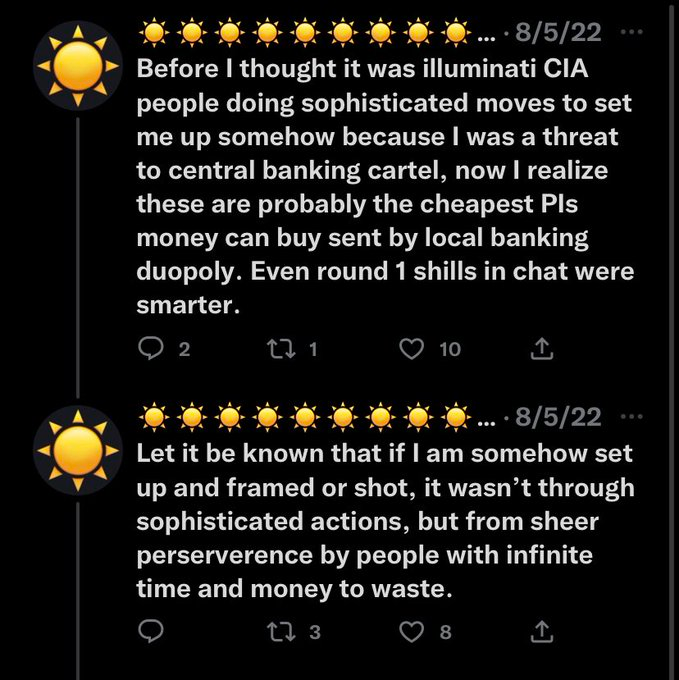 In August, he tweeted “Let it be known that if I am somehow set up and framed or shot, it wasn’t through sophisticated actions, but from sheer perserverence by people with infinite time and money to waste.”