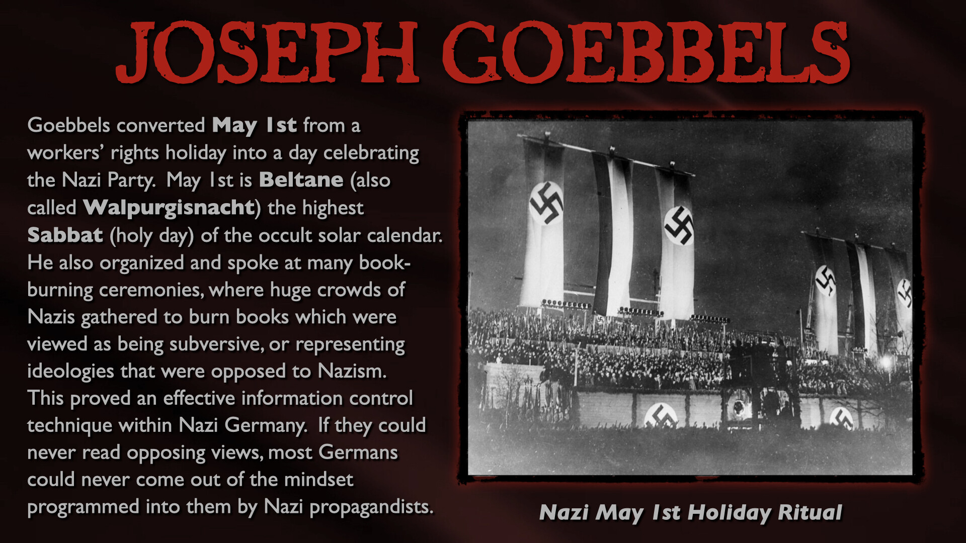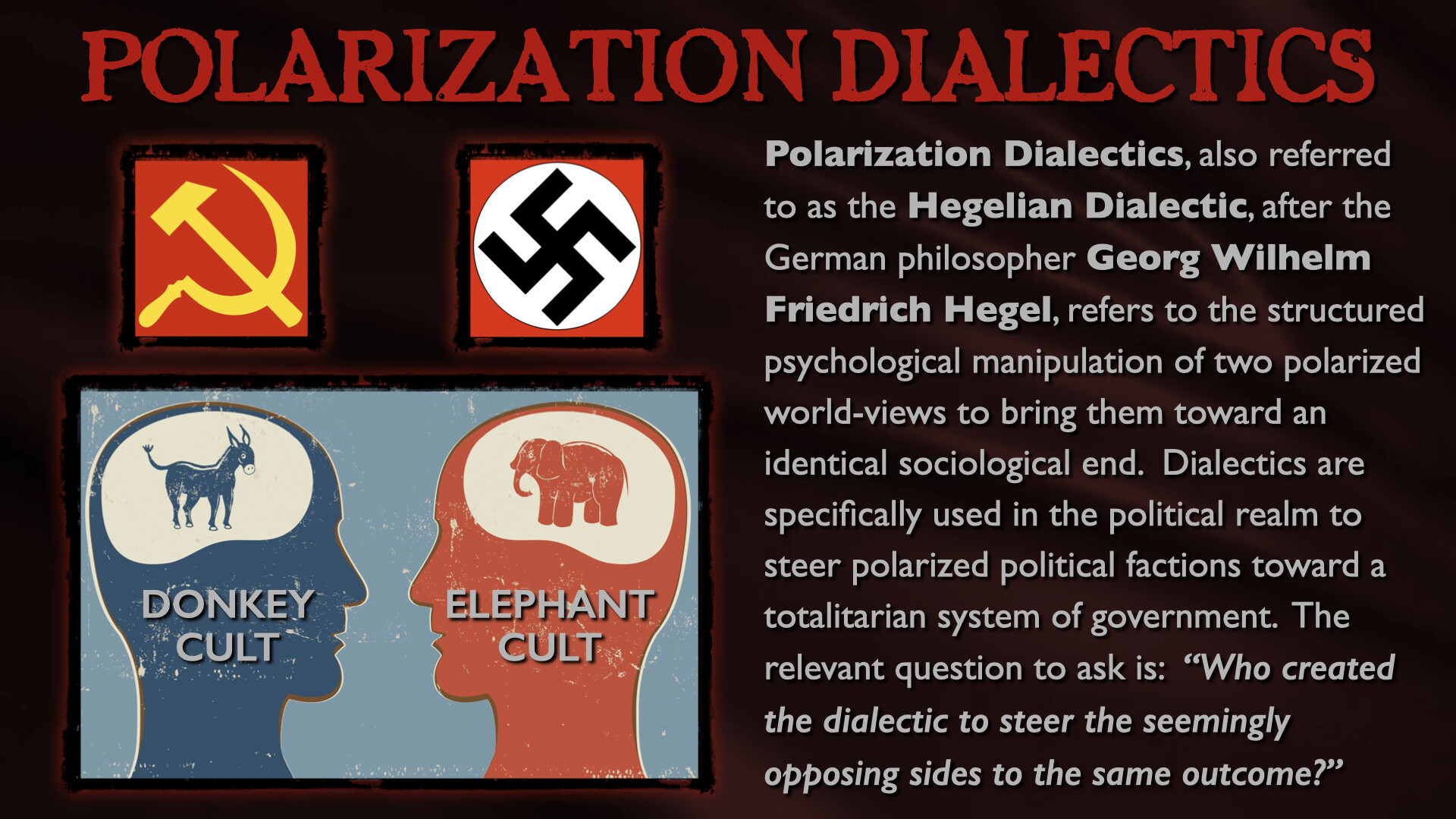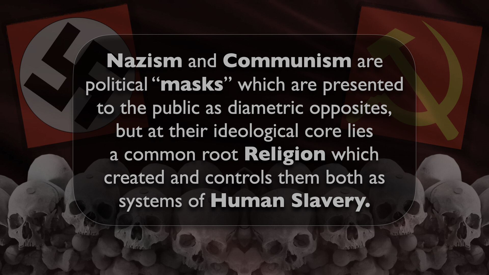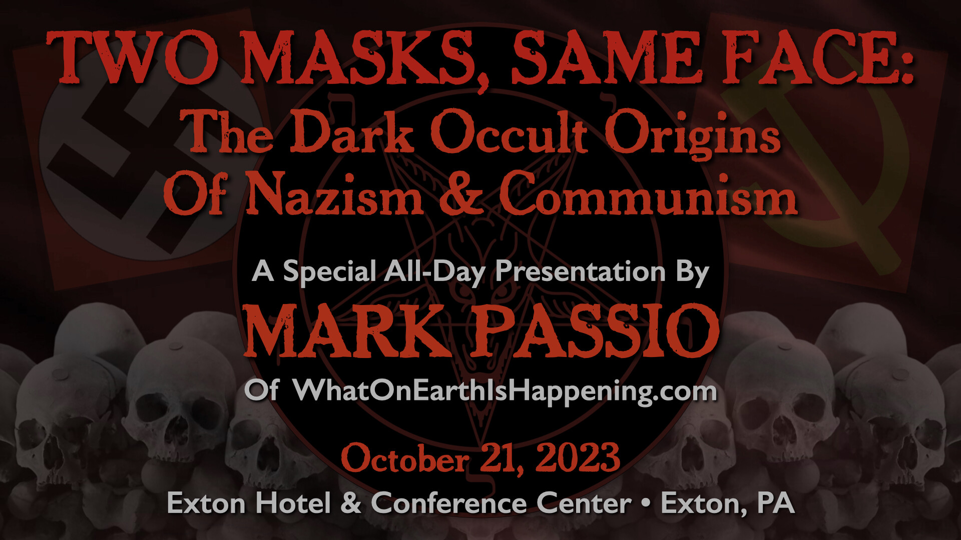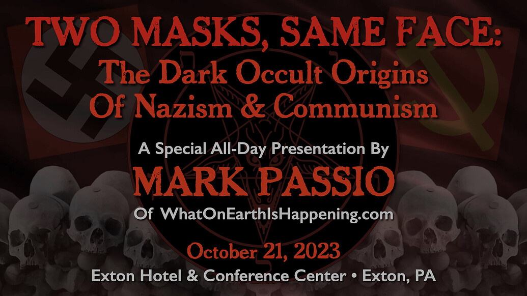 In this epic, all-day presentation, Mark Passio of What On Earth Is Happening exposes the origins of the two most devastating totalitarian ideologies of all time. Mark explains how both Nazism and Communism are but two masks on the same face of Dark Occultism, analyzing their similarities in both mindset and authoritarian methods of control. Mark also delves into the ways in which these insidious occult religions are still present, active and highly dangerous to freedom in the world today. This critical occult information is an indispensable component to any serious student of both world history and esoteric knowledge. Your world-view will be changed by this most recent addition to the Magnum Opus of Mark Passio.
