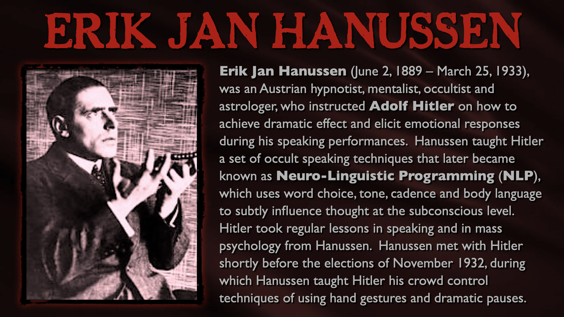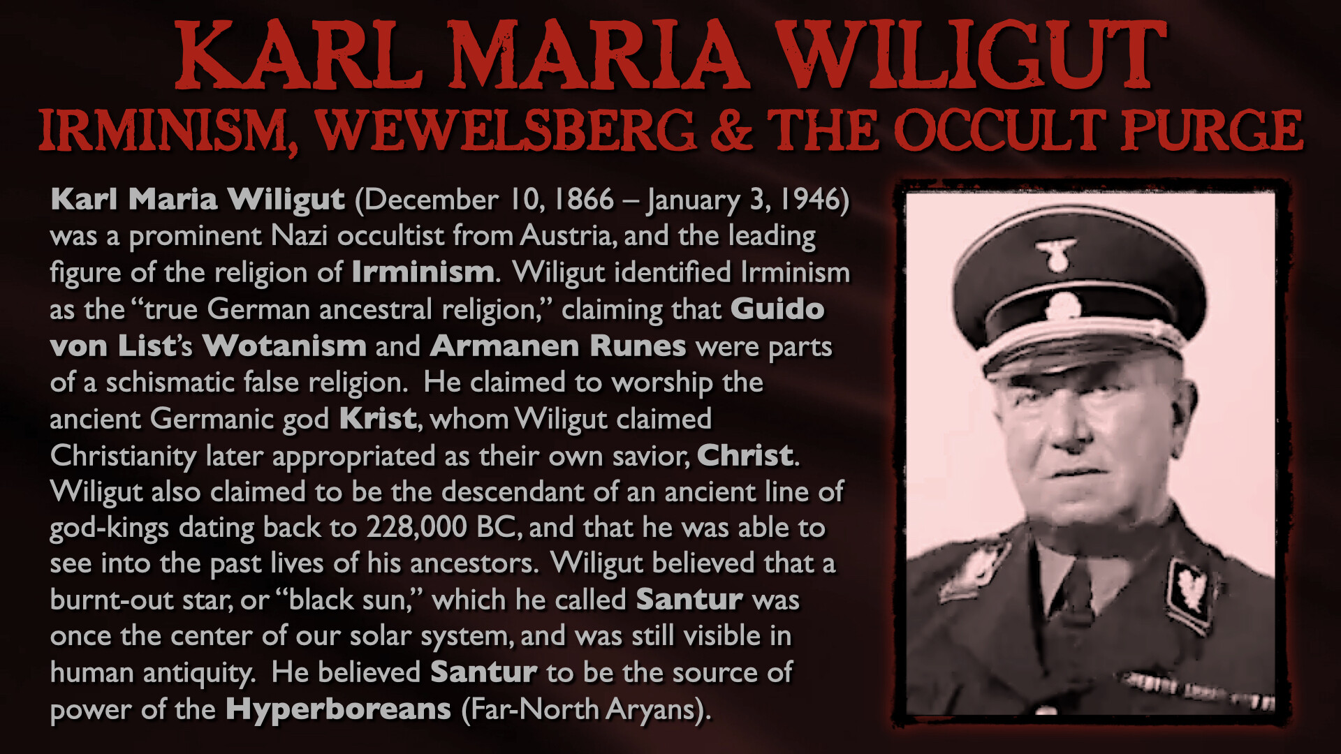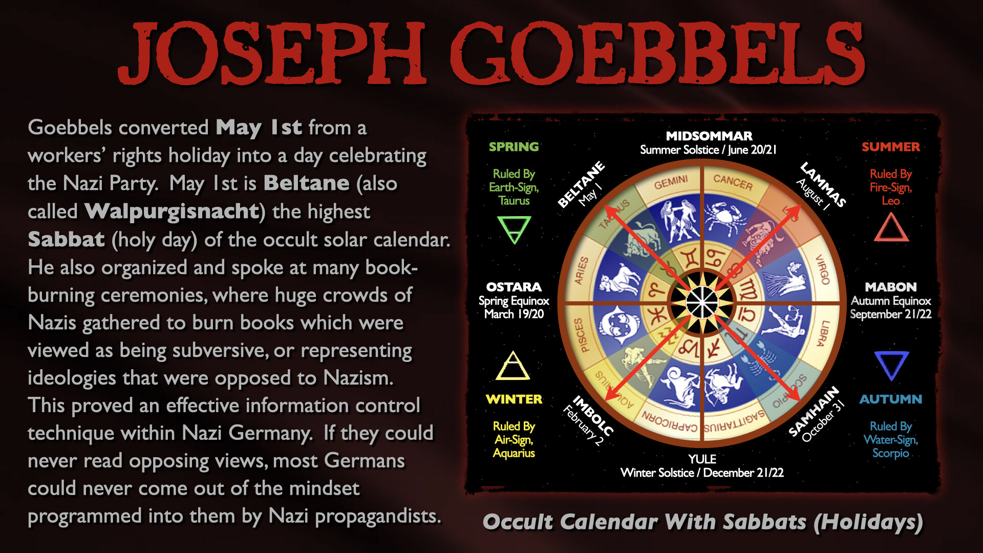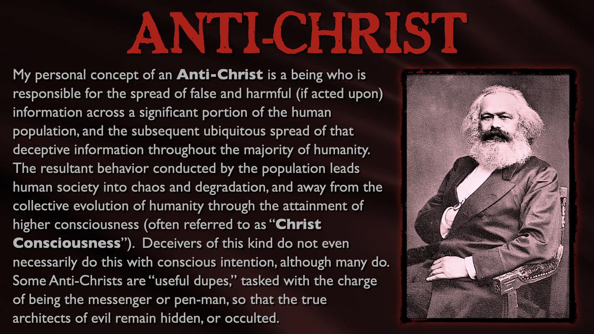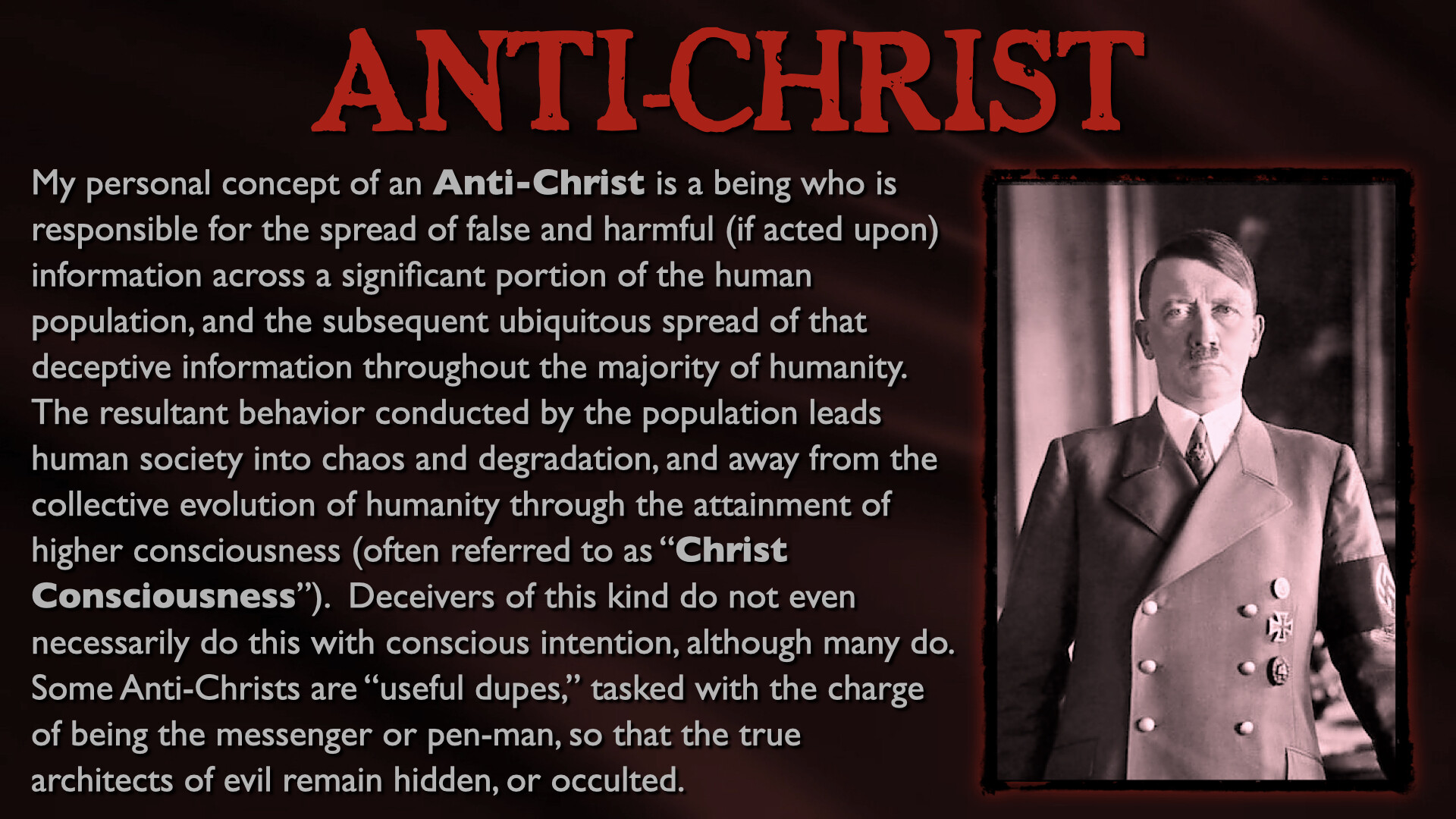In this epic, all-day presentation, Mark Passio of What On Earth Is Happening exposes the origins of the two most devastating totalitarian ideologies of all time. Mark explains how both Nazism and Communism are but two masks on the same face of Dark Occultism, analyzing their similarities in both mindset and authoritarian methods of control. Mark also delves into the ways in which these insidious occult religions are still present, active and highly dangerous to freedom in the world today. This critical occult information is an indispensable component to any serious student of both world history and esoteric knowledge. Your world-view will be changed by this most recent addition to the Magnum Opus of Mark Passio.